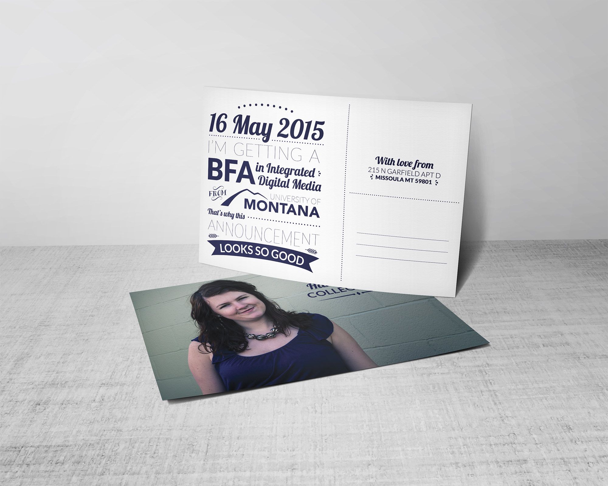 And like the card says, 16 May 2015, I'm getting (got) a BFA in Integrated Digital Media from the University of Montana. That's why this announcement looks so good.