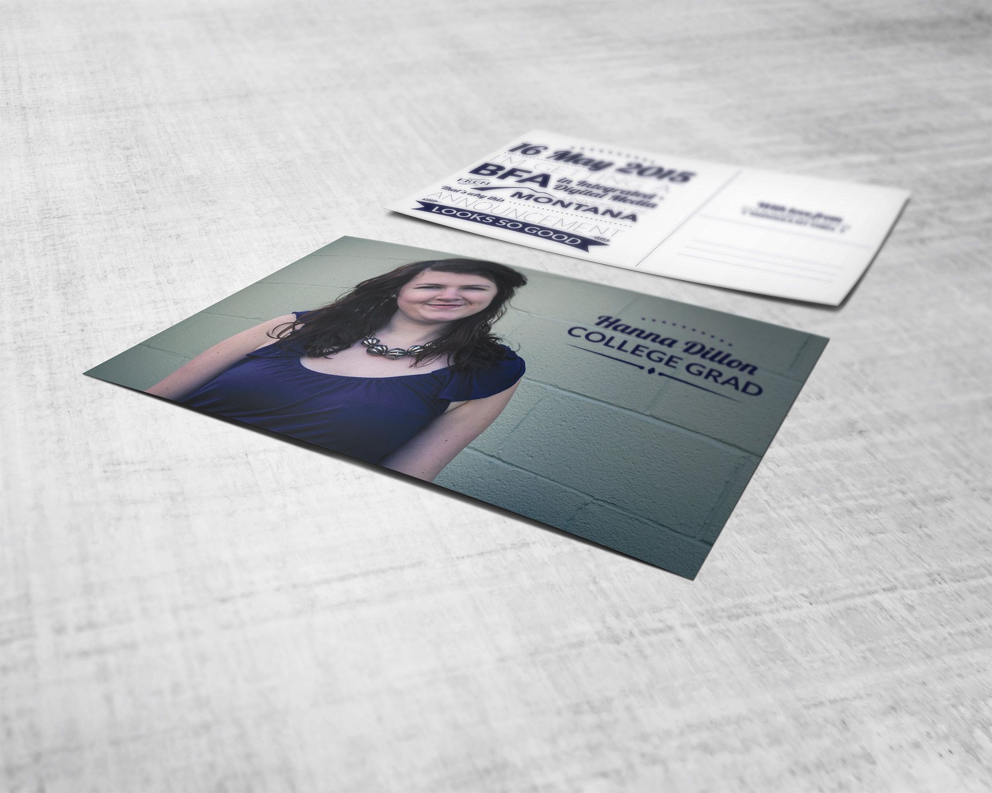 Pressure's on when a graphic designer graduates from college and must tell everyone. I had the unique experience of hiring myself, paying myself, delivering to myself, and then patting myself on the back for all my hard work. These 4 x 6in typographic postcards were designed with Illustrator, and the design holds up as one of the greatest text trends of 2015.
